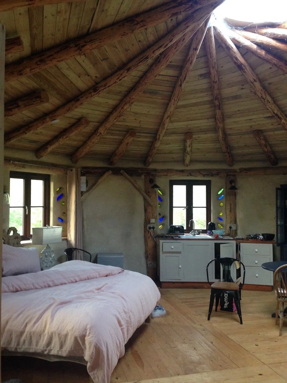 I took over the management of this small 4 acre woodland in 2014 as the owners wanted to produce woodfuel for their farmhouse and make the woodland more accessible as a recreational space. Working closely with the owners we began an annual coppicing rotation and increased stocking density with sweet chestnut, birch and oak. In 2018 we also built an 8m diameter roundhouse with larch structure, reciprocating roof and straw bale walls to be used as a holiday let and artists studio.